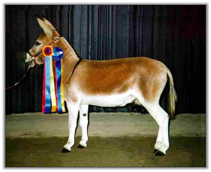 High Point Champion (open), beaten only by her paternal half sister, Fancy! Show Ring (2006) All American Mule and Donkey Congress (NMDA), Jackson